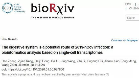 2020年1月31日,海軍軍醫(yī)大學(xué),清華大學(xué)及同濟(jì)大學(xué)等多單位合作在bioRxiv在線發(fā)表題為“The digestive system is a potential route of 2019-nCov infection:?a bioinformatics analysis based on single-cell transcriptomes”的研究論文,該研究的目的是為了剖析表達(dá)ACE2的細(xì)胞組成和比例,并探索2019-nCov感染在消化系統(tǒng)感染中的潛在途徑,分析了肺,食道,胃,回腸和結(jié)腸單細(xì)胞轉(zhuǎn)錄組的數(shù)據(jù)集。