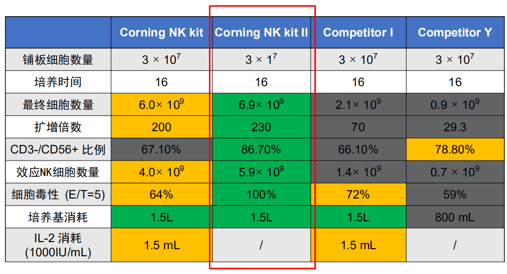 ? 康寧最新NK細(xì)胞培養(yǎng)試劑盒 NK Kit II表現(xiàn)在各方面優(yōu)于同測(cè)產(chǎn)品