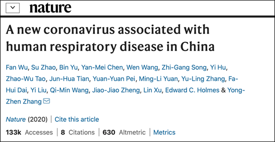 2 月 3 日,復旦大學張永振教授團隊對患者支氣管肺泡灌洗液進行了宏基因組二代測序(mNGS),鑒定出了一種新型冠狀病毒,并發(fā)現(xiàn)該病毒基因組與蝙蝠體內(nèi)發(fā)現(xiàn)的 SARS 樣冠狀病毒基因組有 89.1% 的相似性。