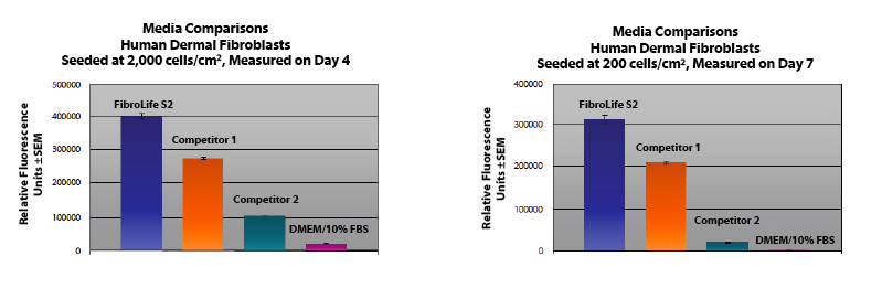 2.原代成纖維細(xì)胞在Lifeline培養(yǎng)基中比在其他市售培養(yǎng)基中生長得更快