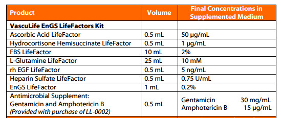 VascuLife?Engs培養(yǎng)基工具包由基本培養(yǎng)基及相關(guān)的補(bǔ)充物和生長因子組成,稱為“生長因素”。此工具包可以為實驗室準(zhǔn)備新鮮的培養(yǎng)基,并延長保質(zhì)期和提高性能。