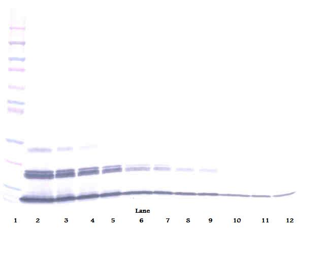 ELISA法檢測mCXCL 16(用10 0μ1/Well抗體溶液),其濃度為0.2 5~1.0μg/ml。該生物素化多克隆抗體與PeproTech的多克隆抗鼠CXCL 16(500-P201G)作為包被抗體,可檢測出至少0.2~0.4ng/孔的重組mCXCL 16。