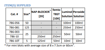 此外,femtoLUCENT?PLUS-HRP也以試劑盒形式提供,包含我們的非動物蛋白阻斷劑(NAP-BLOCKER?)和洗滌緩沖液(femto-TBST?