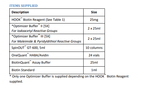 HOOK?-Biotin-PDA標記試劑盒設計用于1-10mg蛋白在1ml緩沖液中偶聯,適用于10次偶聯。
